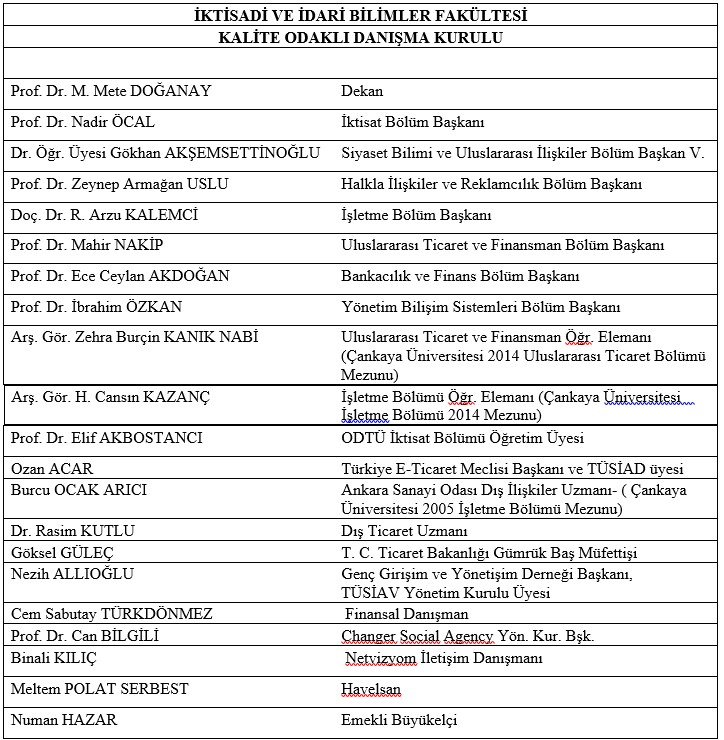 İİBF KALİTE KOMİSYON ÜYELERİ
